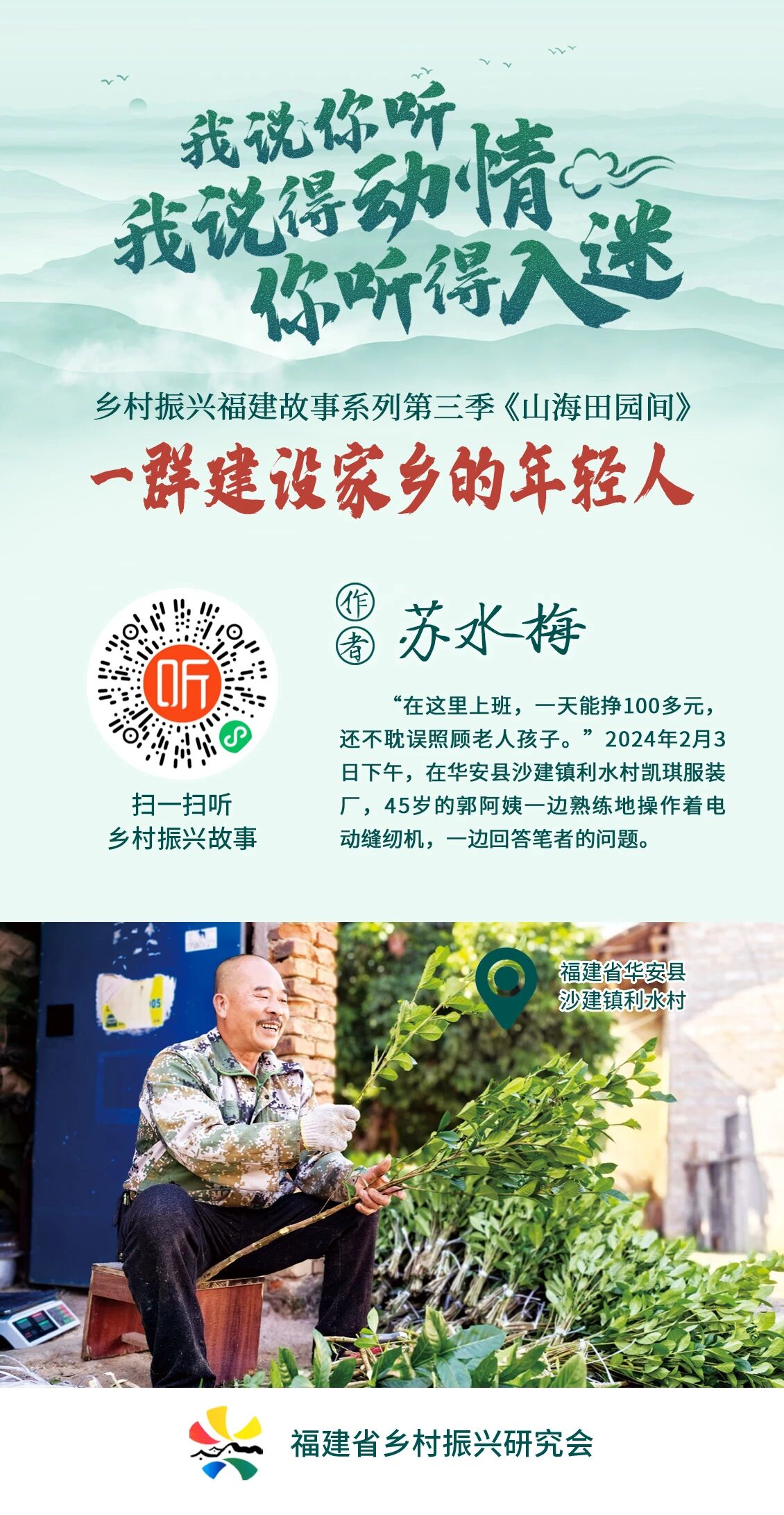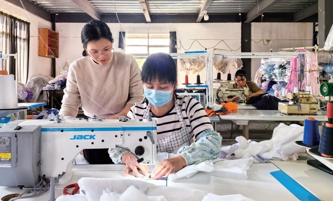 “在这里上班,一天能挣100多元,还不耽误照顾老人孩子。”2024年2月3日下午,在华安县沙建镇利水村凯琪服装厂,45岁的郭阿姨一边熟练地操作着电动缝纫机,一边回答笔者的问题。