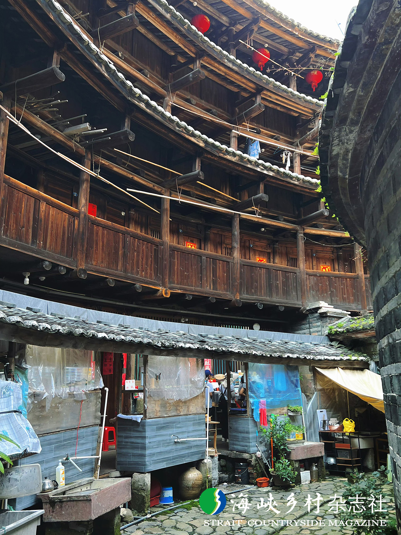 怀远楼无疑是坎下村最为耀眼的文化瑰宝。这座建于清末年间(公元1905-1909年)的双环圆土楼,以其精美绝伦的建筑工艺和保存完好的状态,成为福建土楼申报“世界文化遗产”中备受瞩目的存在。立于楼前,其宏伟壮观的气势令人震撼。土楼高大厚实的墙体由黄土夯筑而成,历经百年风雨依然坚固如磐。门楣上“怀远楼”三个大字苍劲有力,仿佛蕴藏着无声的召唤,引人步入那段沉淀的岁月。